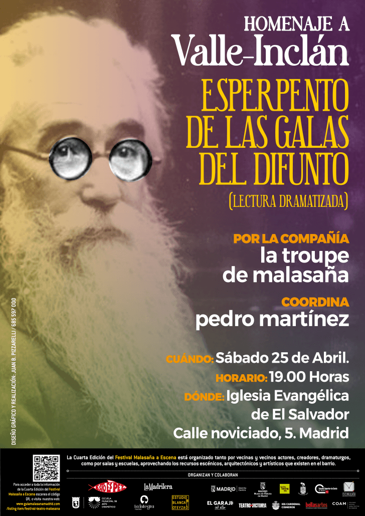 Homenaje a Valle-Inclán. ESPERPENTO DE LAS GALAS DEL DIFUNTO, sábado 25 de abril a las 19h en la Iglesia Evangélica (c/ Noviciado, 5)del Salvador